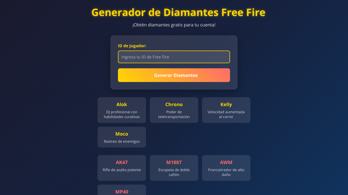 Free Fire diamond generator web tool